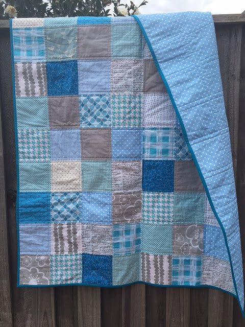 If you are anything like me you have tonnes of beautiful scraps fabrics from previous projects that are just sitting in the cupboard begging to be used. Recently I decided it was time to put them to good use and I made a simple cot quilt with blues and greys in a basic square design. I raided my fabrics and found some gorgeous prints I knew would work great together.